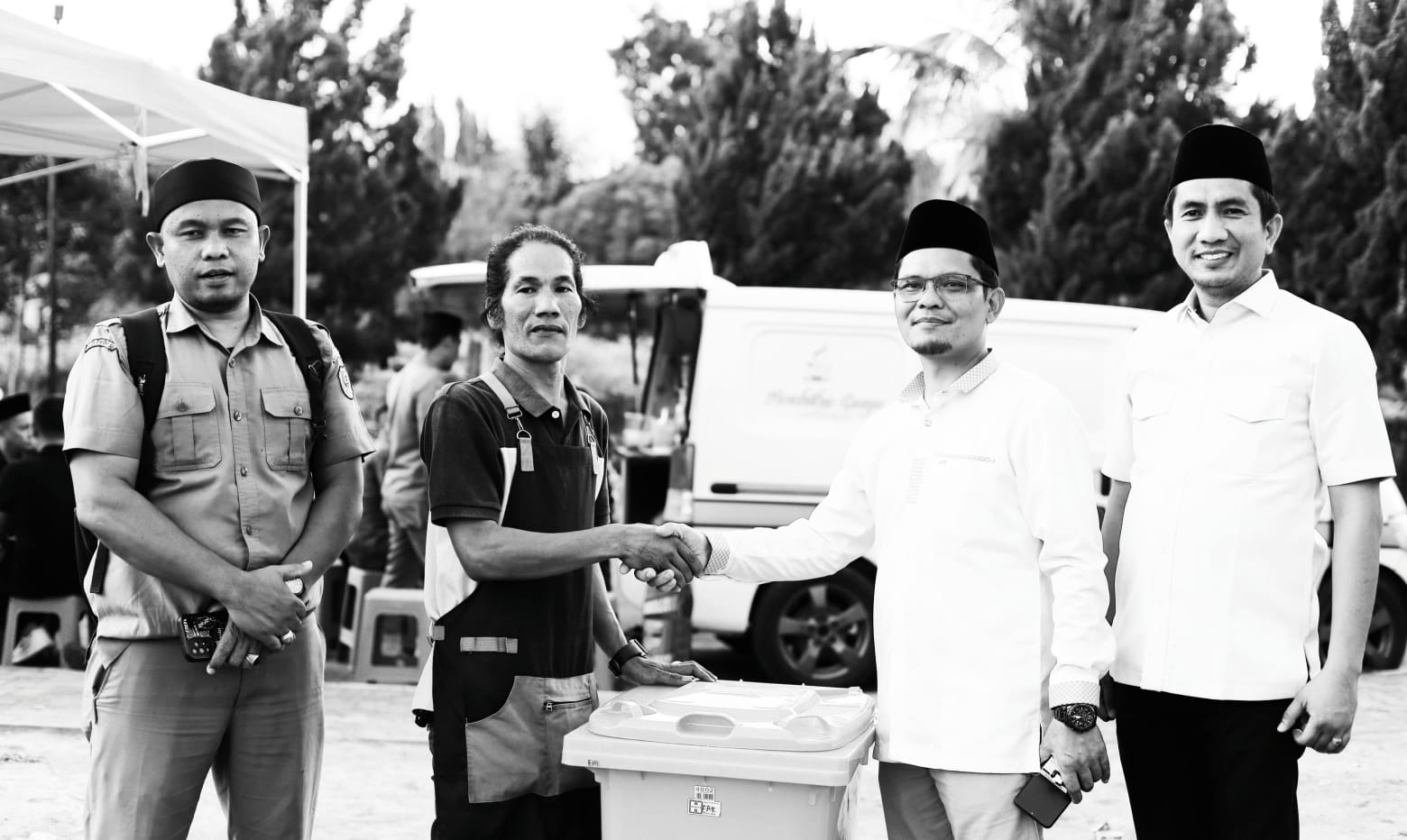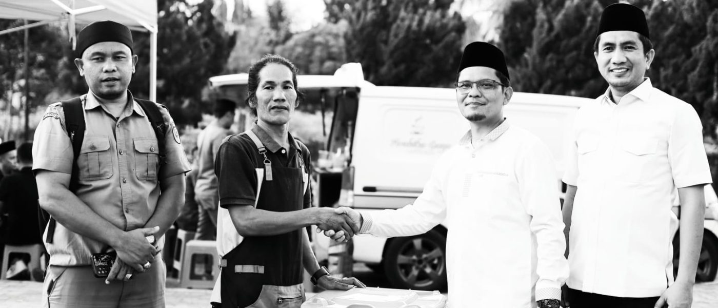 Sumbangsih pedagang tersebut diserahkan oleh pemilik Mas Gun Coffee Gusnar Efendi dan diterima Ketua BKM Khoirul Anwar Siregar didampingi Sekretaris Dede Hafirman Said dan Bendahara Zulkifli.